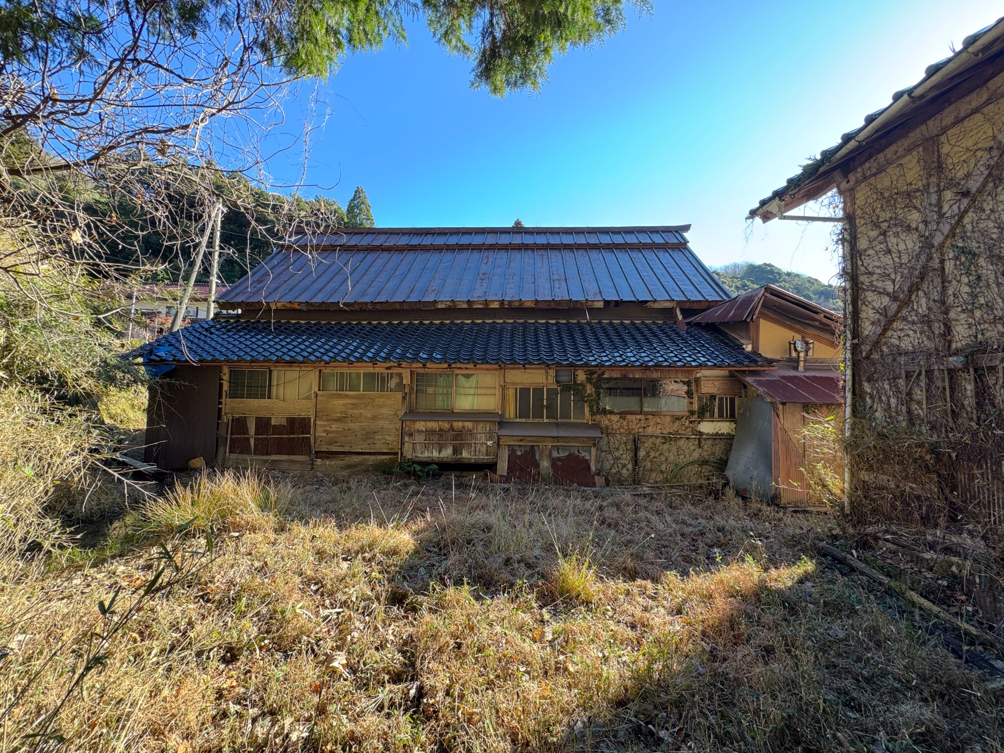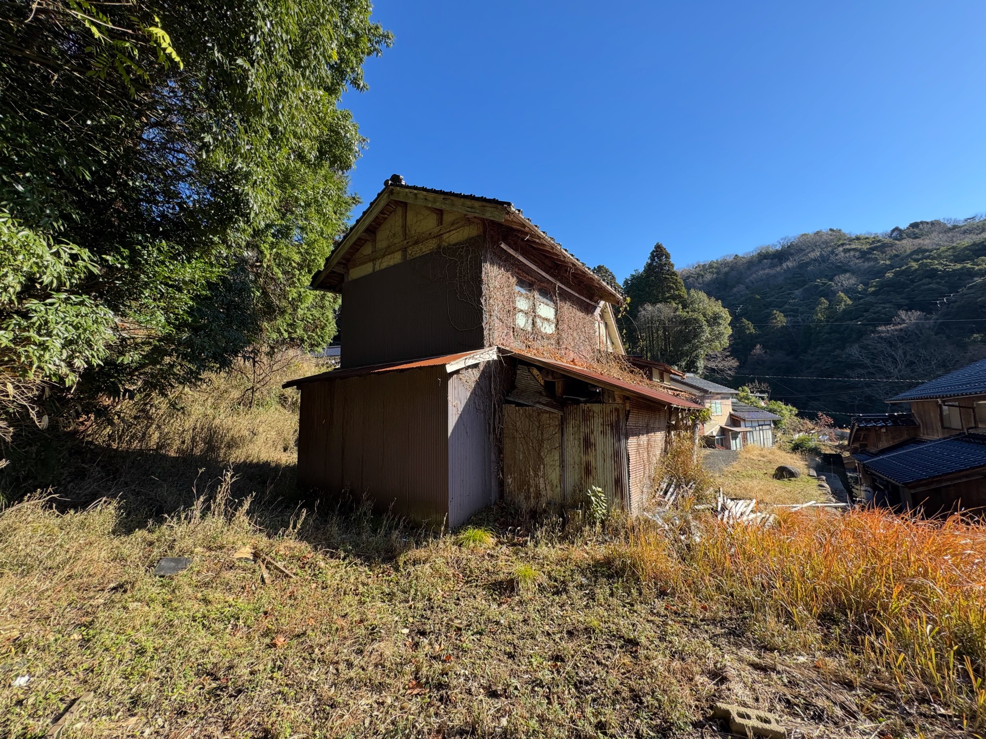 建物構造 農家住宅:木造金属板葺平家建、土蔵A:木造瓦葺2階建て、土蔵B:木造瓦葺2階建て 間口 約28m